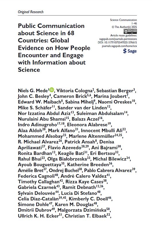 This is one of the biggest science communication studies to date: Co-leading a team of more than 200 co-authors, I analyzed how people around the world engage with information about science. The analysis is based on a large survey of 71,922 people in 68 countries and includes several country-level factors to identify cultural patterns and differences. The study was published in Science Communication.